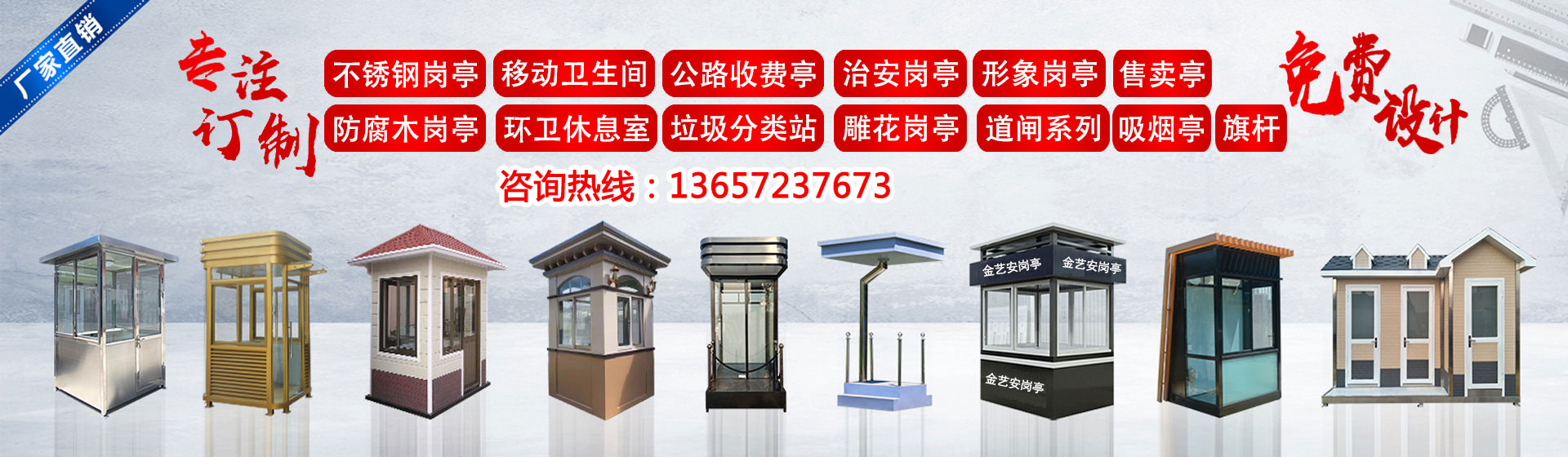 武漢金藝安金屬制品有限公司(簡稱JYA)是一家專業(yè)從事設(shè)計、生產(chǎn)制作加工、銷售及售后服務(wù)一體化,為客戶提供建筑/交通/市政配套設(shè)施一站式服務(wù)企業(yè)。主營:不銹鋼崗?fù)ぃ蛋鄭復(fù)ぃ蜗髰徟_,防彈崗?fù)ぃ紘娖釐復(fù)ぃ伟矋復(fù)ぁ⒕坝^崗?fù)ぃ圬浲ぃ\噲鍪召M亭、高速公路收費亭,不銹鋼旗桿,錐型旗桿,電動旗桿等系列產(chǎn)品。廣泛應(yīng)用于:學(xué)校,廣場,體育場館,軍隊,酒店,企業(yè)單位,小區(qū)停車場,學(xué)校,醫(yī)院,工廠、市政交通收費、平安城市管理、景觀環(huán)境美化等領(lǐng)域。 我們不斷發(fā)展壯大,秉承“品質(zhì)、信譽、服務(wù)”的經(jīng)營理念參與市場競爭,堅持高技術(shù)、高品質(zhì)、高效率的方針,結(jié)合用戶需求,不斷推出新產(chǎn)品,樹立品牌優(yōu)勢。擁有經(jīng)驗豐富的專業(yè)設(shè)計師和質(zhì)量過硬的施工,銷售服務(wù)網(wǎng)絡(luò)遍及全國各地。 我們的宗旨:誠實守信, 追求卓越, 客戶至上。今后公司將一如既往,腳踏實地,與用戶攜手合作,共創(chuàng)輝煌!...